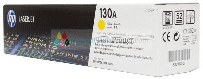 HP Yellow Toner 130A [CF352A]Â adalah tinta toner HP asli original yang tersedia di toko online suppliertintaprinter.com kami melayani Jual Beli Tinta Printer Dan Supplie berbagai macam merk Tinta Printer asli original dengan harga yang bersaing. Dari Tinta,Toner,hingga Cartridge HP,Canon,Epson,Brother dll tersedia di toko online suppliertintaprinter.com